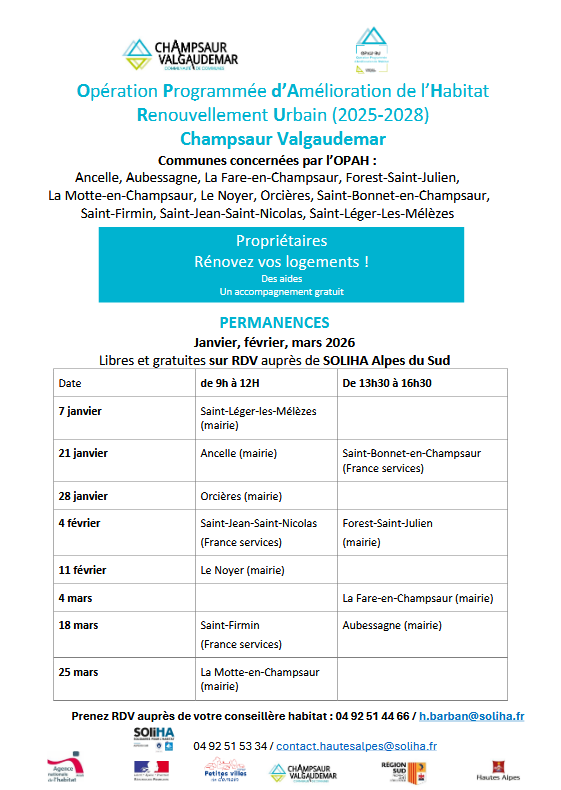 Vous trouverez sur le flyer, disponible sur le site internet de la mairie, les conditions pour bénéficier des ces aides ainsi que les dates de toutes les permanences prévues.