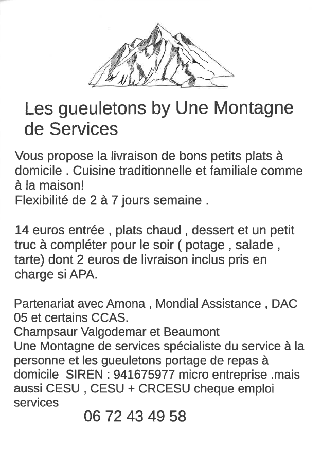 Les geuletons : livraison de petits plats à domicile dans le Champsaur, Valgaudemard et Beaumont, Cuisine traditionnelle et familiale